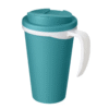 Dubbelväggig isolerad mugg med ett spillsäkert skruvlock. Locket är fäst för att förhindra spill och förseglas utan silikon. Du kan mixa och matcha färger för att skapa din perfekta mugg. Muggen är helt återvinningsbar. Tillverkad i Storbritannien. Presenteras i en vit presentförpackning. BPA-fri. EN12875-1-kompatibel, tål maskindisk och mikrovågsugn